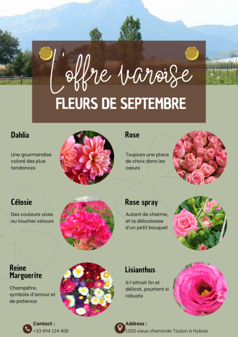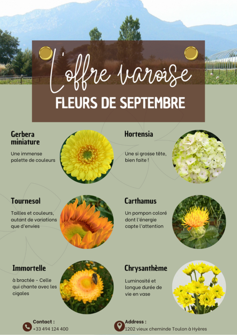 Pour vos bouquets de soleil, voici un échantillon de ce que vous propose le Var en Fleurs de saison :