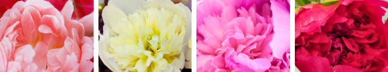 - Ils apportent au Marché Aux Fleurs d'Hyères des variétés telles que : "Fleur de pêcher", "Duchesse de Nemours", "Festiva Maxima", "Jules Elie", "Alexander Fleming", "Sarah Bernhardt", "Pink Noémie", "Coral Charm" et "Coral Sunset".