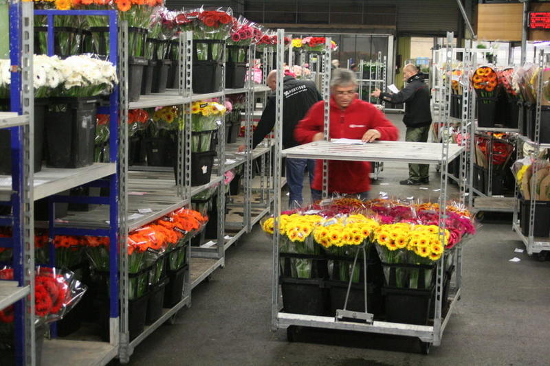Au fil des ventes, les négociants viennent récupérer les lots de fleurs qu'ils viennent d'acheter.