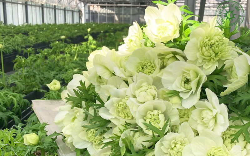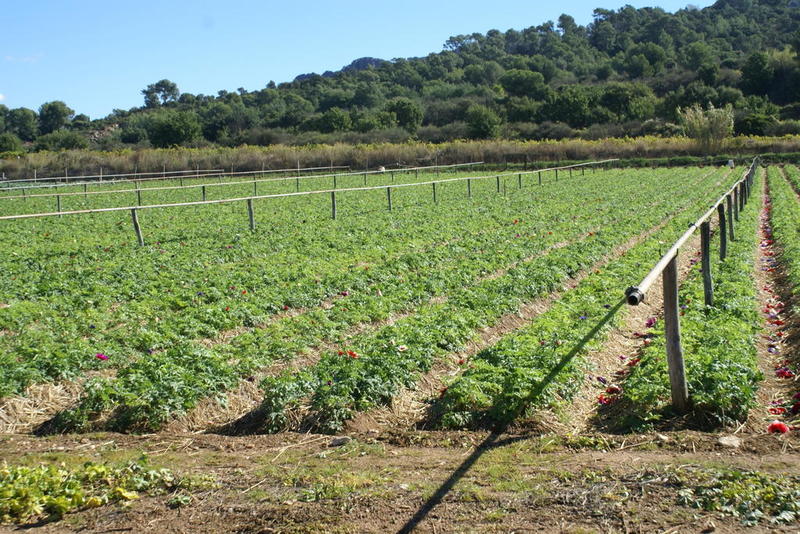 Les renoncules sont aussi plantées, comme leurs cousines les anémones, en culture hors-sol pour une meilleure maîtrise des intrants, dans le respect de l'environnement.