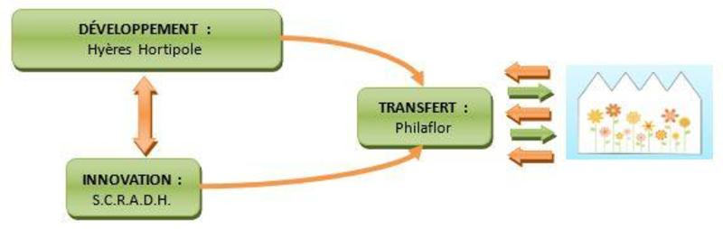 Hyères Hortipole, association qui regroupe 10 structures professionnelles membres de l’amont et de l’aval de la filière horticole, travaillent au quotidien avec Philaflor dans un rôle d’animation et de coordination.