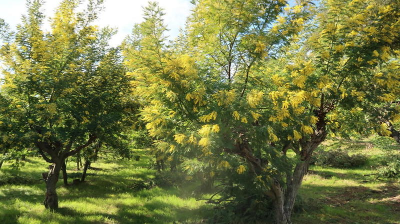 ...pourtant, il n’y a qu’un siècle et demi que ces arbres dorés, du genre Acacia, sont arrivés sur nos côtes en provenance d’Australie, introduits en Europe par des botanistes anglais vers le début du dix-neuvième siècle. Là, en bordure de Méditerranée, ils ont trouvé un climat et des sols propices à leur développement.