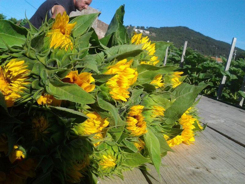 Les débuts timides du mois de mars, deviennent des volumes conséquents dès le mois de mai avec un pic de production sur juin et juillet. Les 3 mois suivants, une centaine de milliers de tiges de tournesol en moyenne passeront par les cadrans de la société du Marché Aux Fleurs d'Hyères.