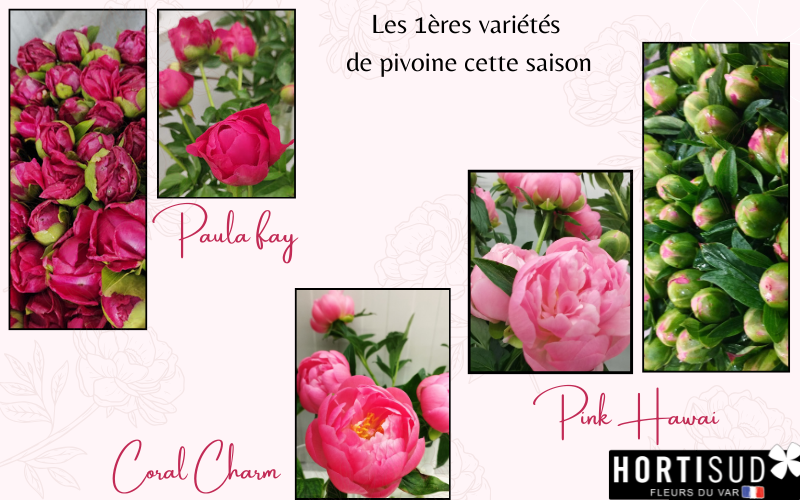 "Ha ça commence?!" Une centaine de pivoines Pink Hawai® a fait impression ce mercredi 5 mars ! C'est doucement que les pivoines s'annoncent, quelques ondulations avant la grosse vague, Pink Hawai® et Paula Fay® en tête.