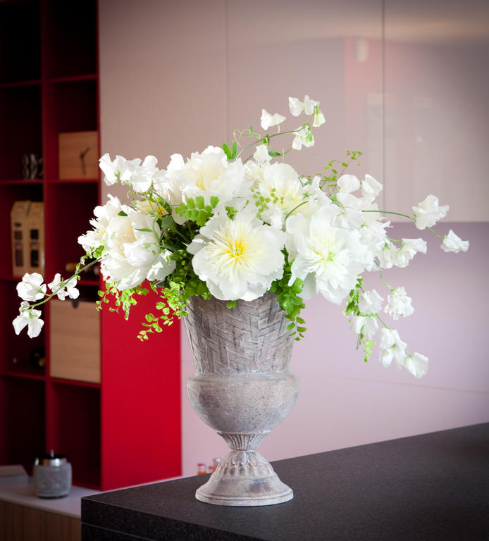 Matériel : 1 vase Médicis, 2 blocs de mousse florale, 1 morceau de papier d'emballage polypro.