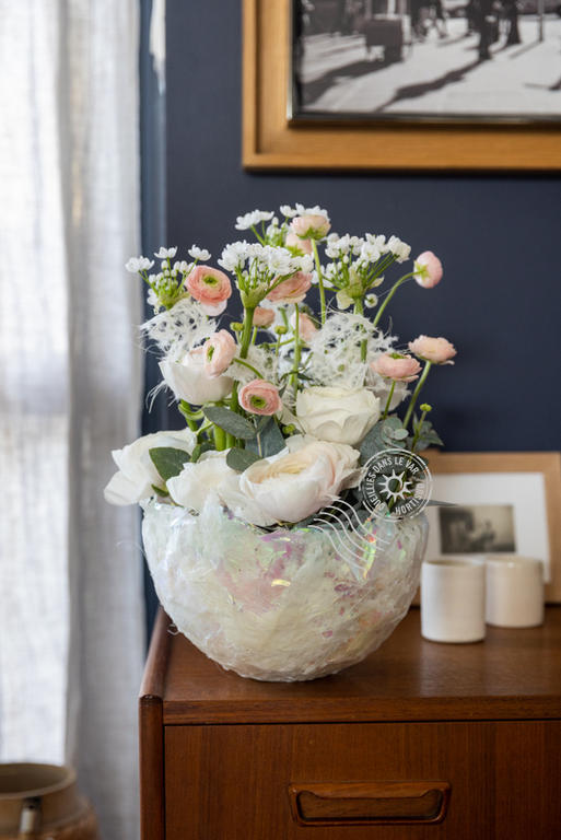 Eclosion de boutons de fleurs, sortant de leurs coquilles ces renoncules symbolisent l'arrivée du printemps dans une création florale très douce, signée Charline Pritscaloff, Meilleur Ouvrier de France.