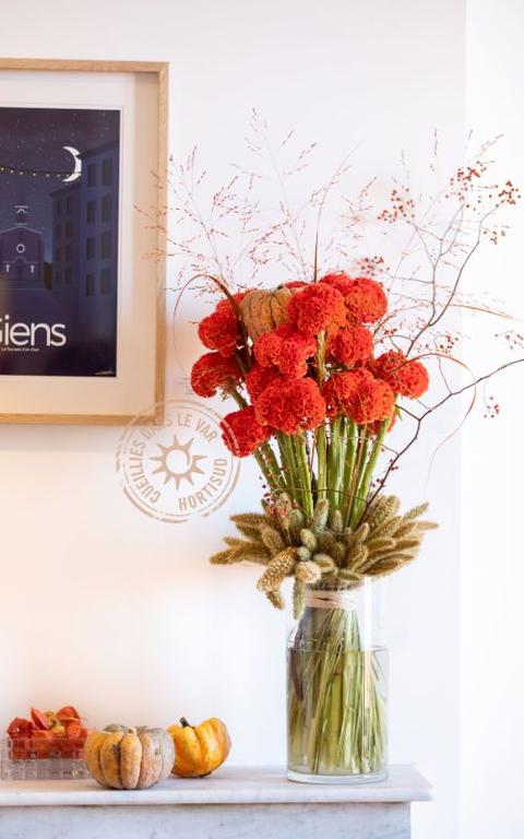 Un bouquet simple qui ne manque pourtant pas d'imagination ! Les amarantes oranges sont idéales pour les créations florales d'Halloween. Suivez Stéphane Chanteloube, Meilleur Ouvrier de France
